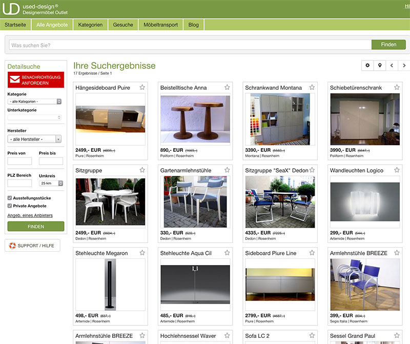 Unter der Internetplattform used-design für Designermöbel aus zweiter Hand bieten wir Ihnen auch Ausstellungsstücke aus den Räumen der Neuen Wohnkultur.